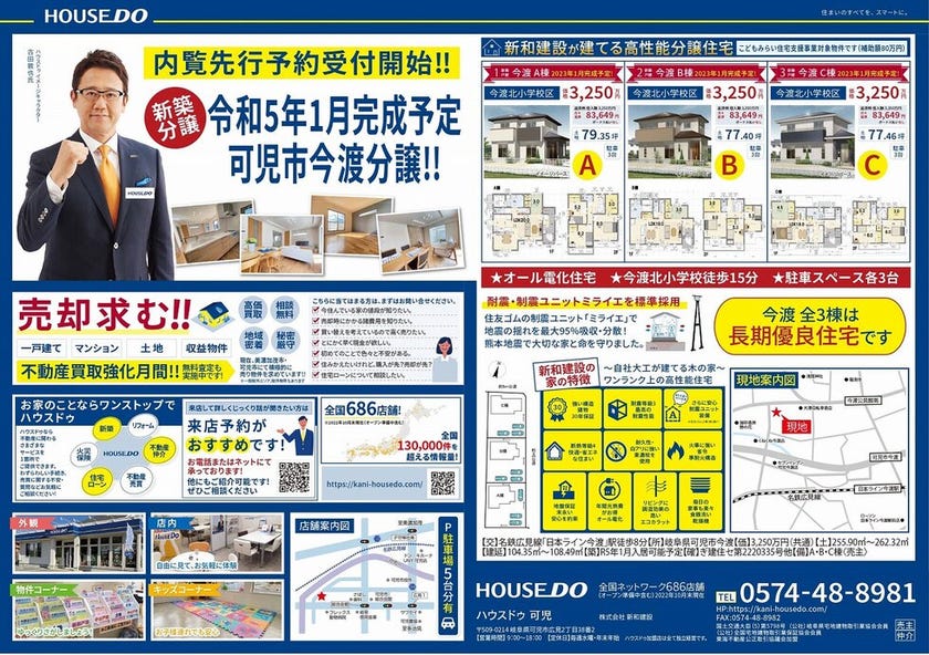 2023年1月完成予定・今渡分譲全3棟、好評販売中!